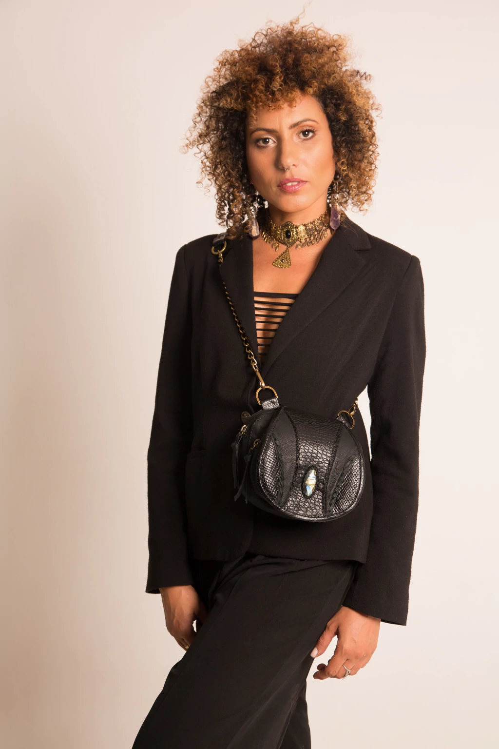Fabricadas artesanalmente em couro legítimo, o modelo Wild tem em sua lapela mix de couros, costura 100% a mão e cristal